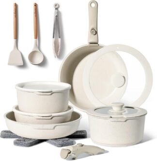 Just Perfecto® Conjunto Panelas Bege Revestido em Mármore – 21 Peças – JL-721
