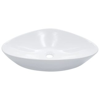 Lavatório de luxo em cerâmica oval 40 x 33 cm branco – PORTES GRÁTIS