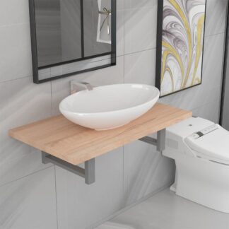 Conjunto de móveis de casa banho 2 peças cerâmica cor carvalho – PORTES GRÁTIS