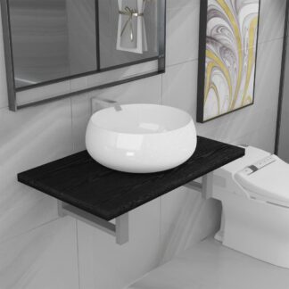 Conjunto de móveis de casa banho 2 peças cerâmica preto – PORTES GRÁTIS