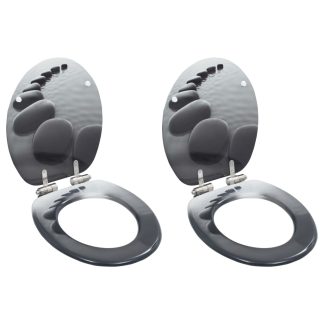 Assentos sanita 2 pcs c/ tampas fecho suave MDF design pedras – PORTES GRÁTIS