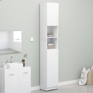 Armário de casa de banho 32×25,5×190 cm contraplacado branco – PORTES GRÁTIS