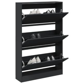 • Armário de Sapatos Preto 80x39x180 cm Madeira Engenheirada – PORTES GRÁTIS