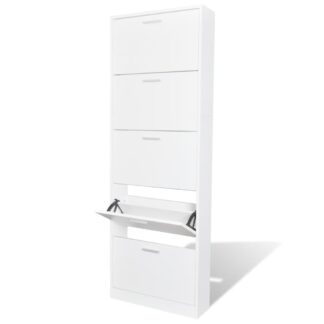 Sapateira com 4 gavetas articuladas 60x34x187,5 cm branco – PORTES GRÁTIS