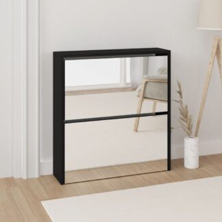 Sapateira com espelho de 2 divisórias 63x17x67cm preto – PORTES GRÁTIS