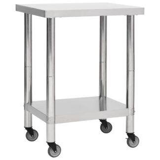 Mesa de trabalho de cozinha com rodas em aço inoxidável 60x45x85 cm – PORTES GRÁTIS