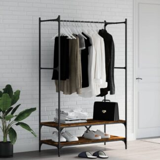 • Suporte p/ roupas c/ prateleiras deriv. madeira carvalho fumado – PORTES GRÁTIS