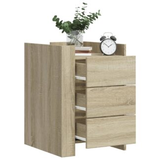 Mesa de cabeceira c/ LEDs derivados de madeira carvalho sonoma – PORTES GRÁTIS