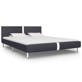 Estrutura de cama 140×200 cm couro artificial cinzento – PORTES GRÁTIS