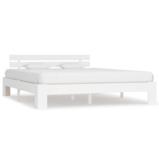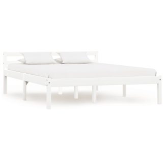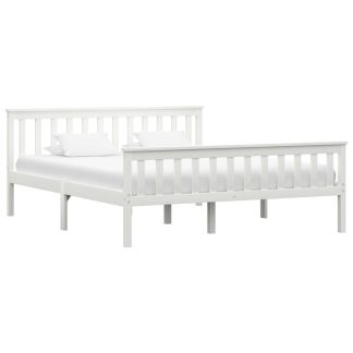 Estrutura de cama em pinho maciço 160×200 cm branco – PORTES GRÁTIS