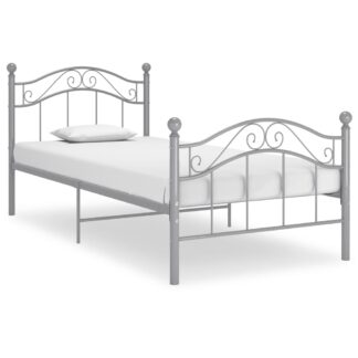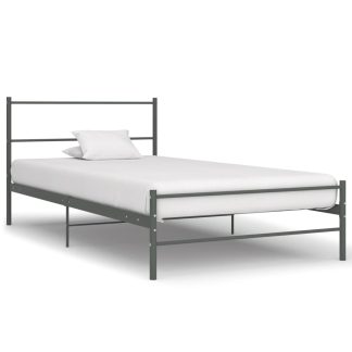 Estrutura de cama 100×200 cm metal cinzento – PORTES GRÁTIS