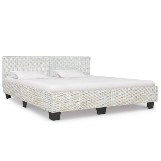 Estrutura de cama 180×200 cm vime genuíno cinzento – PORTES GRÁTIS
