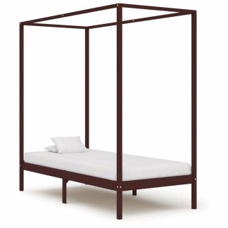 Estrutura cama com toldo 90×200 cm pinho maciço castanho-escuro – PORTES GRÁTIS