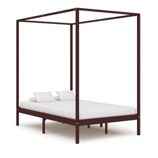 Estrutura cama com toldo 120x200cm pinho maciço castanho-escuro – PORTES GRÁTIS