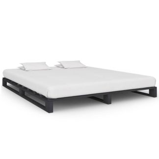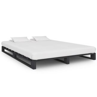 Estrutura de cama em paletes pinho maciço 160×200 cm cinzento – PORTES GRÁTIS