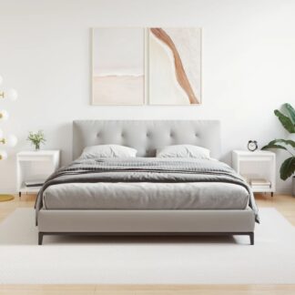 Mesa de cabeceira com luzes LED 35x39x55 cm cinzento-cimento – PORTES GRÁTIS