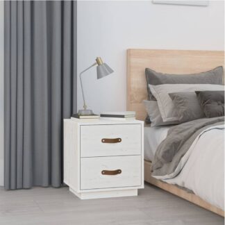 Mesa de cabeceira 40x34x45 cm madeira de pinho maciça branco – PORTES GRÁTIS