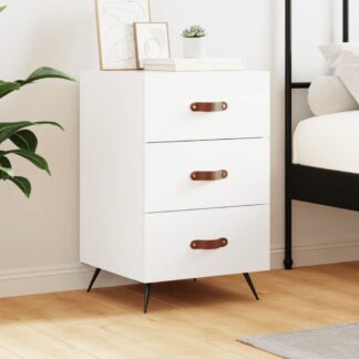 Mesa de cabeceira 40x40x50cm derivados madeira branco brilhante – PORTES GRÁTIS