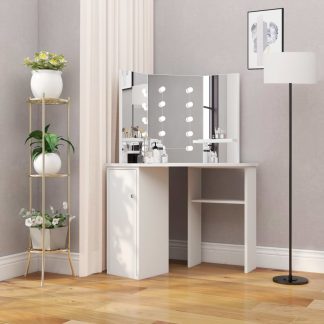 Mesa de maquilhagem/toucador com luzes LED branco claro – PORTES GRÁTIS