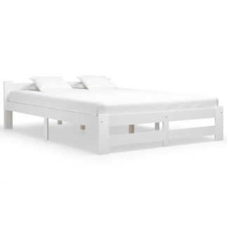 Estrutura de cama 140×200 cm pinho maciço branco – PORTES GRÁTIS