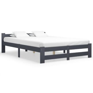 Estrutura de cama 140×200 cm pinho maciço cinzento-escuro – PORTES GRÁTIS