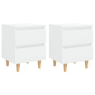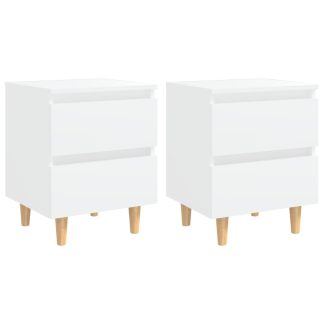 2 Mesas cabeceira pernas pinho 40x35x50 cm branco brilhante – PORTES GRÁTIS