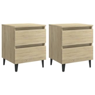 2 Mesas cabeceira c/ pernas pinho 40x35x50 cm carv. sonoma – PORTES GRÁTIS