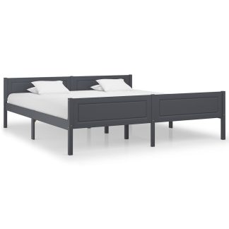 Estrutura de cama 200×200 cm madeira de pinho maciça cinzento – PORTES GRÁTIS