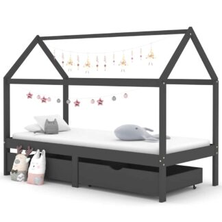 Cama p/ crianças c/ gavetas 90×200 cm pinho maciço cinza-escuro – PORTES GRÁTIS