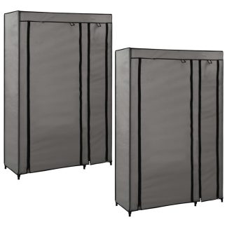Roupeiros dobráveis 2 pcs 110x45x175 cm tecido cinzento – PORTES GRÁTIS