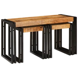 Mesa de Ninho 3 pcs Madeira mango sólida e metal rugoso – PORTES GRÁTIS