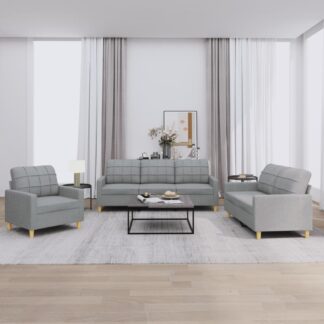 3 pcs conjunto de sofás com almofadões tecido cinzento-claro – PORTES GRÁTIS