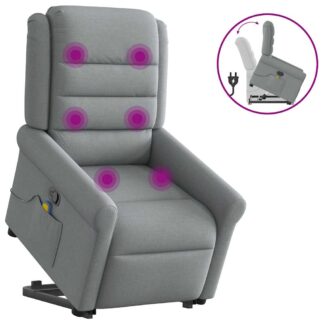 Poltrona elétrica elevatória massagens tecido cinzento-nublado – PORTES GRÁTIS