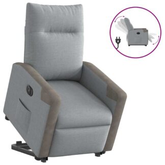 Poltrona reclinável elevatória elétrica tecido cinzento-claro – PORTES GRÁTIS