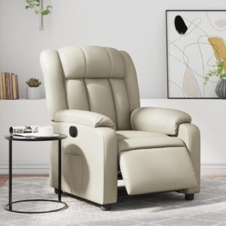 Poltrona reclinável elétrica couro artificial cor creme – PORTES GRÁTIS