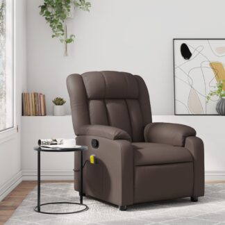 Poltrona massagens reclinável elétrica couro artif. castanho – PORTES GRÁTIS