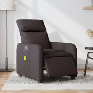 Poltrona reclinável massagens elétrica tecido castanho-escuro – PORTES GRÁTIS