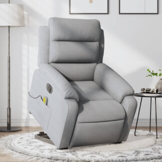 Poltrona de massagens reclinável elétrica tecido cinzento-claro – PORTES GRÁTIS
