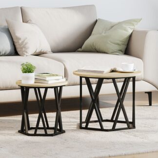 Conjunto de 2 Mesas de Apoio em Carvalho Sonoma, Madeira de Engenharia e Metal – PORTES GRÁTIS