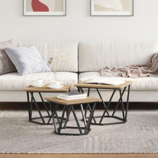 Mesas Laterais Empilháveis 3 pcs Carvalho Sonoma Madeira Revestida – PORTES GRÁTIS