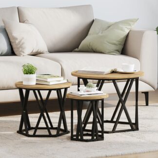 Mesas Laterais Empilháveis 3 pcs Carvalho Artisan em Madeira Compensada – PORTES GRÁTIS