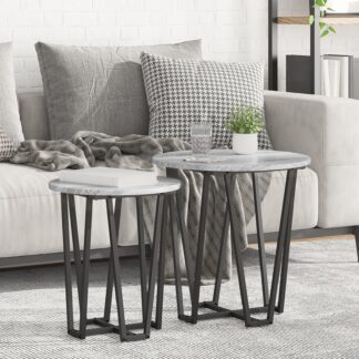 Conjunto de 2 Mesas Laterais Cinza Sonoma em Madeira Revestida com Metal – PORTES GRÁTIS
