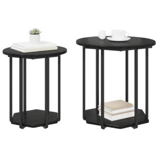 Conjunto de Mesas de Apoio 2 pcs Carvalho Preto em Madeira de Engenharia e Metal – PORTES GRÁTIS