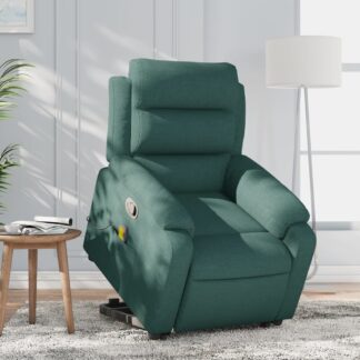Poltrona reclinável elevatória de massagens tecido verde-escuro – PORTES GRÁTIS