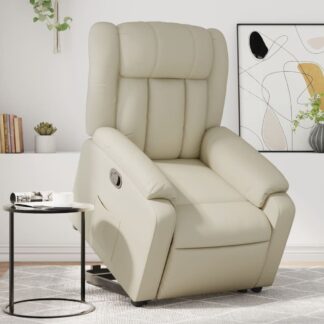 Poltrona reclinável elevatória elétrica couro artificial creme – PORTES GRÁTIS