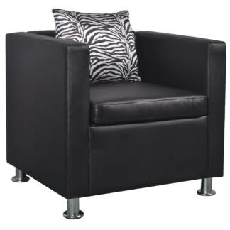 Poltrona em couro artificial preto – PORTES GRÁTIS