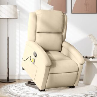 Poltrona elevatória de massagens tecido cor creme – PORTES GRÁTIS