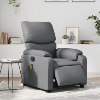 Poltrona massagens reclinável elétrica couro artif. cinzento – PORTES GRÁTIS