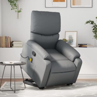 Poltrona massagens reclinável elevatória couro artif. cinzento – PORTES GRÁTIS