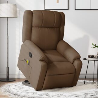 Poltrona reclinável elevatória tecido castanho-escuro – PORTES GRÁTIS